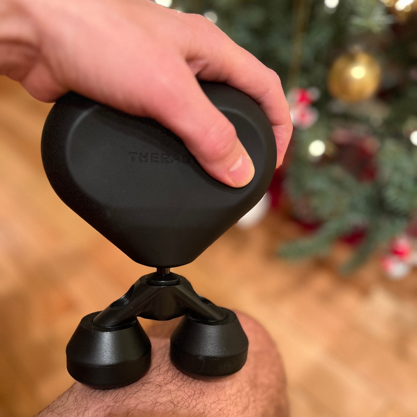 Percussive massagers are all the rage, and this gem from Theragun is so nice. We bought the Theragun Mini and the Duo Adapter to go with it, which gives you twice the fun on every pass. This version is highly portable, so we pack it with us most places we go.