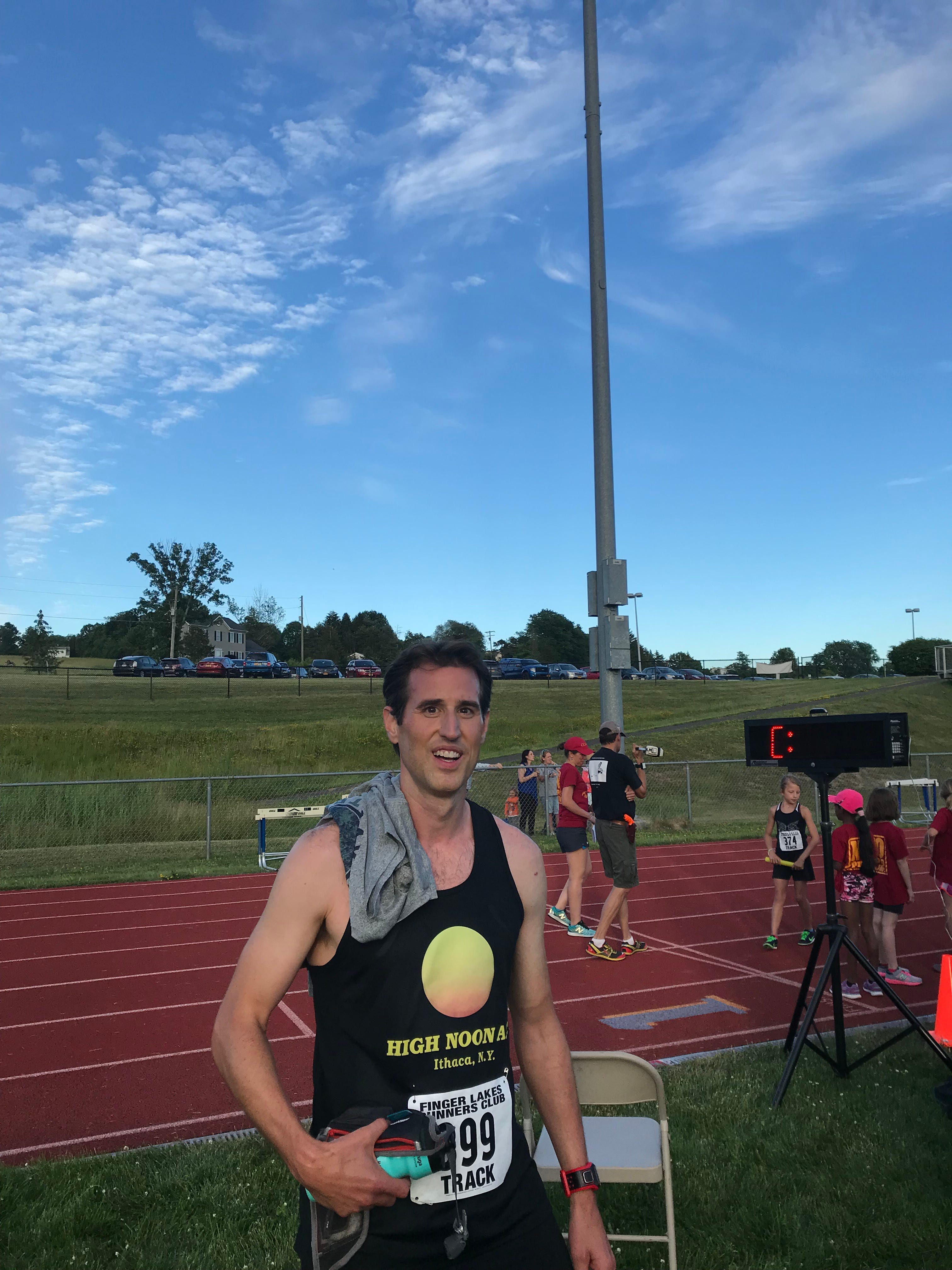 I could write a ton more about the evening, but here’s the TL;DR. I finished in 5:17, an 6-second improvement over my prior record at Hartshorne. I was seeded in the fastest heat, knowing after the first straightaway that I was not going to be the first to cross the tape. I was quickly passed by half the field. I focused on running 120-second 400s. I made the turn onto the final straightaway and saw the clock blink past 5:00. I poured every ounce of willpower I had into turning my legs over, knowing that this final stretch would make or break the day. Turns out it made the day.