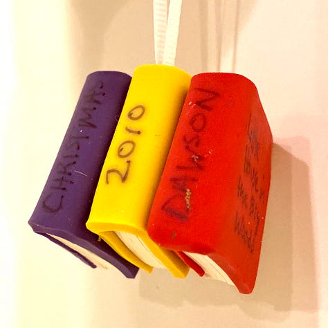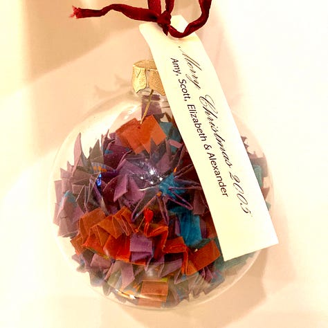 We’ve been making homemade ornaments for our family since we were married. We skipped 1998 and 1999, though. We were newly married then, moving to apartments in Waltham, Massachusetts and Fairport, New York. As we had kids and built a home, our ornament streak remained intact!