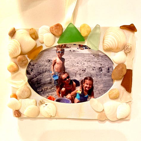 2007 – Sea Glass Photo – We collected the sea glass and seashells for this ornament during a summer trip to Cape May with cousin Cassidy. Such fun in more temperate weather!