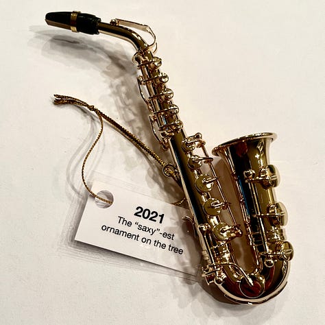 2021 – Saxophone – We call this the “Saxy”-est ornament on the tree. 2021 has been all about the saxophone (well, flute and clarinet, too) for Xander as he auditions for music school. He also was the principle saxophonist at the NYSSMA All-State Music Festival.