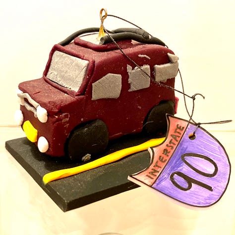 2013 – Honda Pilot – We bought our Honda Pilot this year and immediately drove it cross-country to Oregon. Plenty of fun on I-90! Elizabeth (age 12) made this ornament by herself out of clay.