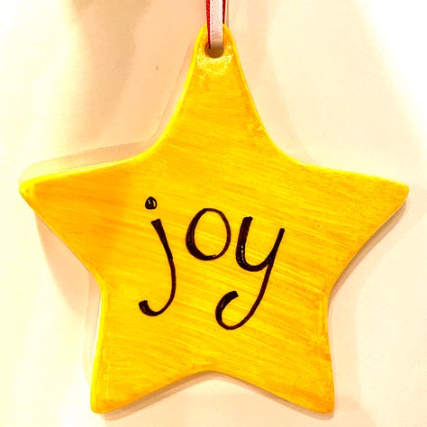 2003 – Joy – Our son Xander was born in 2003, so definitely a cause for Joy! This was a pre-made ceramic ornament. We painted on it with ceramic paint and affixed a laminated picture on the back.