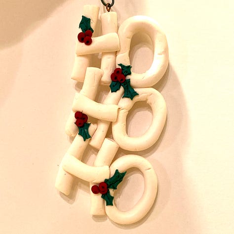 2000 – Ho, Ho, Ho – We bought a clay book for ourselves. Sculpey Clay in hand, we had a lot of fun learning new techniques. It was a double-ornament year!