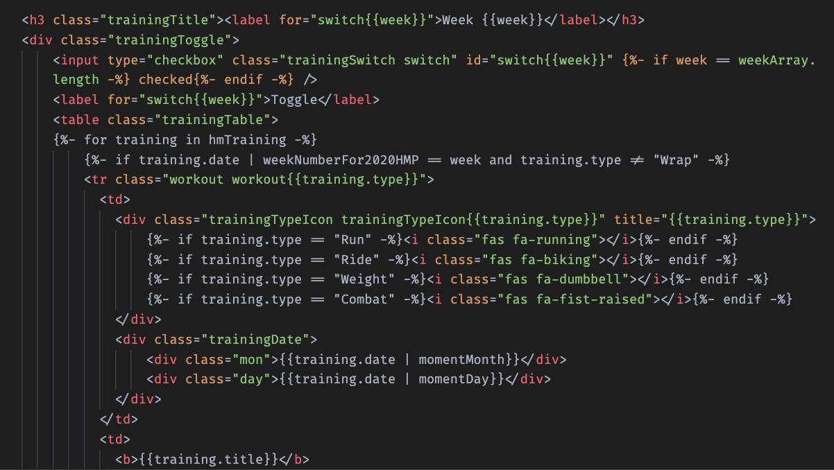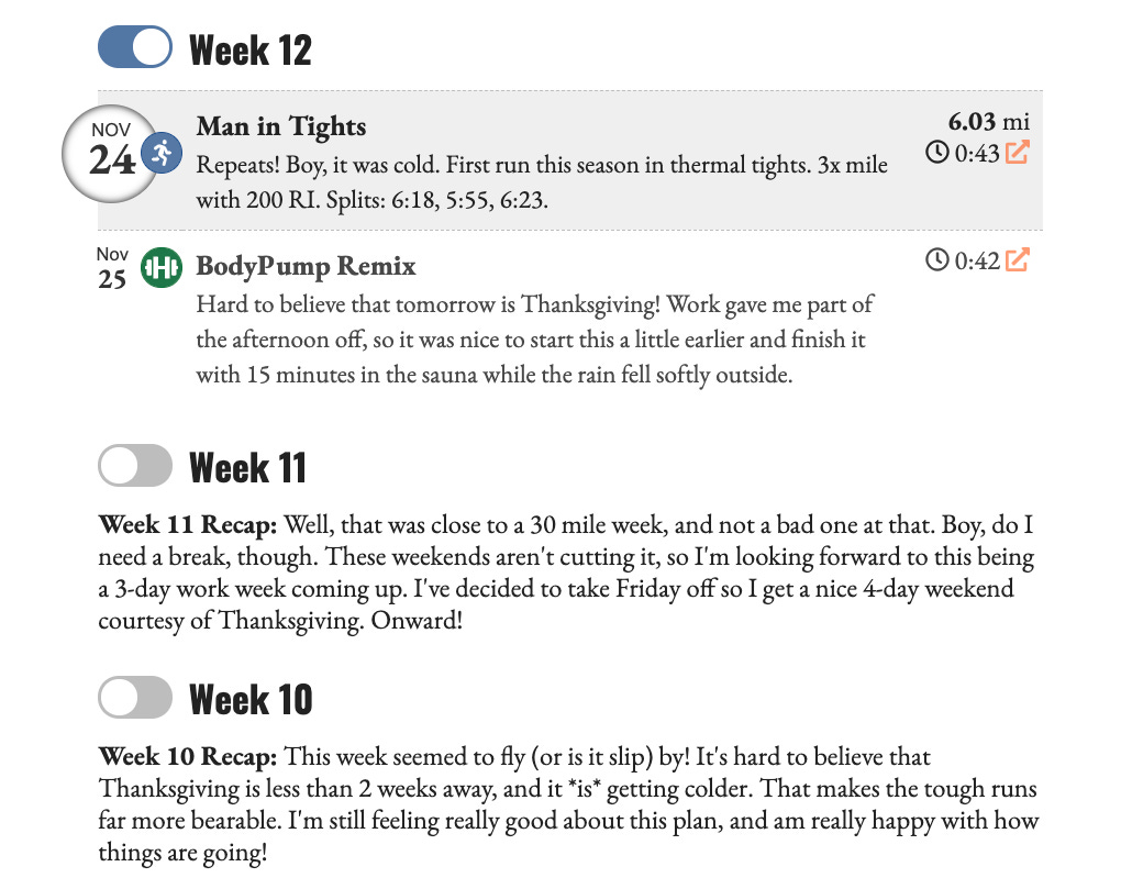 I created a page to share my training goals and commentary, using Eleventy magic, a CSS-only toggle, and the checkbox hack.