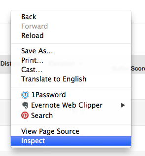 Open up your browser console. I’m going to show you this in Chrome, which is how I’d do this, but if you use Firefox or (shudder) Internet Explorer, you can do this there, too. Right-click anywhere on the web page and click Inspect.
