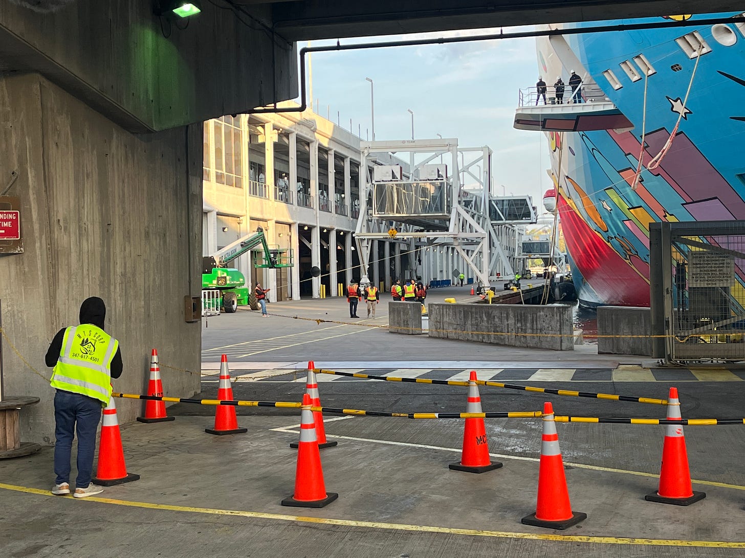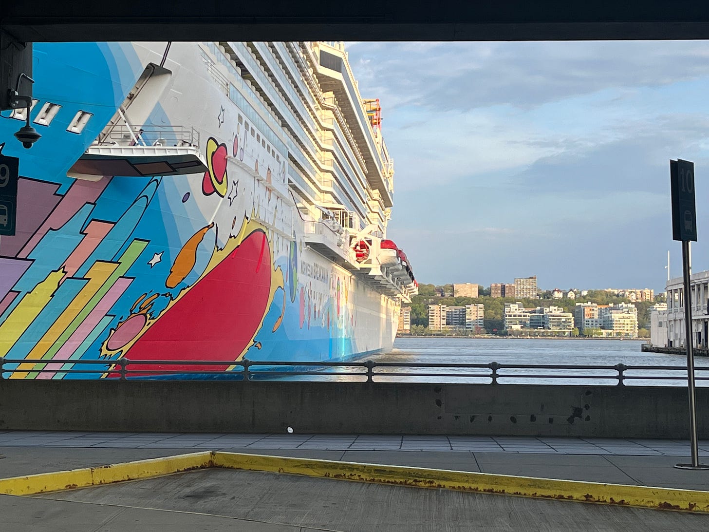 It’s a massive ship: 5,620 guests and crew, 14 decks, and 1,068 feet long. As I completed my run, I passed no fewer than 25 tractor-trailer trucks waiting patiently in line to replenish the ship.