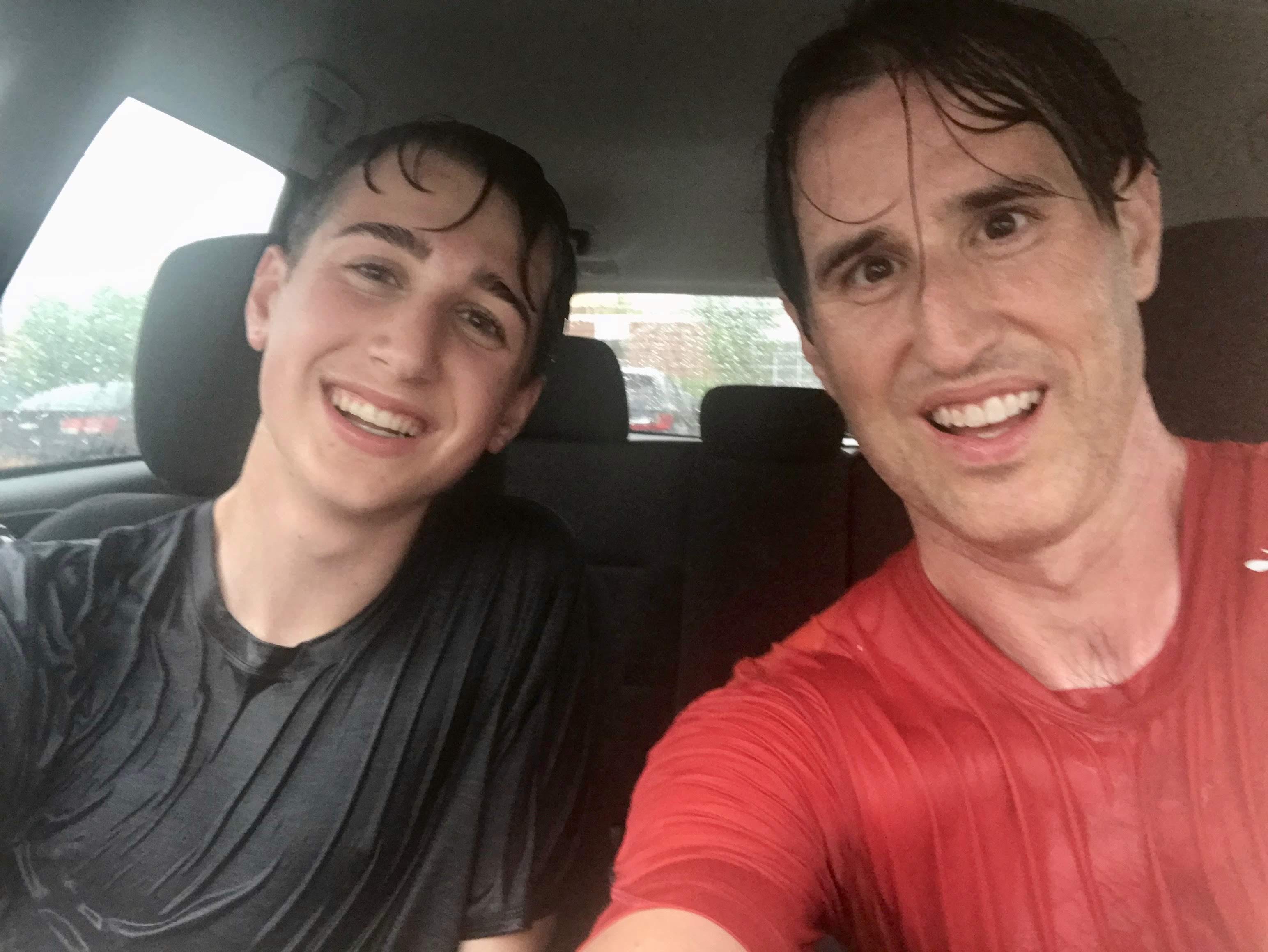 Xander and I got utterly SOAKED as we waited for the race to start, and then enjoyed the sloshy dash to the finish.