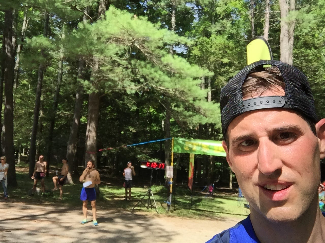 And then it was done! The trail spits you back onto a gravel road that, after 100 yards or so of downhill, leads to a grassy stretch to the finish line. I took a few minutes to gather my breath, had one of the most delicious peaches I’ve ever had, and then enjoyed encouraging other runners and talking with more people who mingled around the finish area.