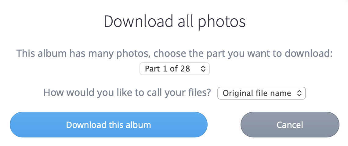 Our running club undertook a project to modernize our photo archives, which meant migrating a large Yogile photo library to Google Photos. Because there’s no server-to-server transfer option, I had to download each album individually and then re-upload it to Google Photos. Some albums were simple, requiring only a single download, while others were split into multiple parts—sometimes many—based on image resolution and album size. One album, for example, required 28 separate downloads to complete.