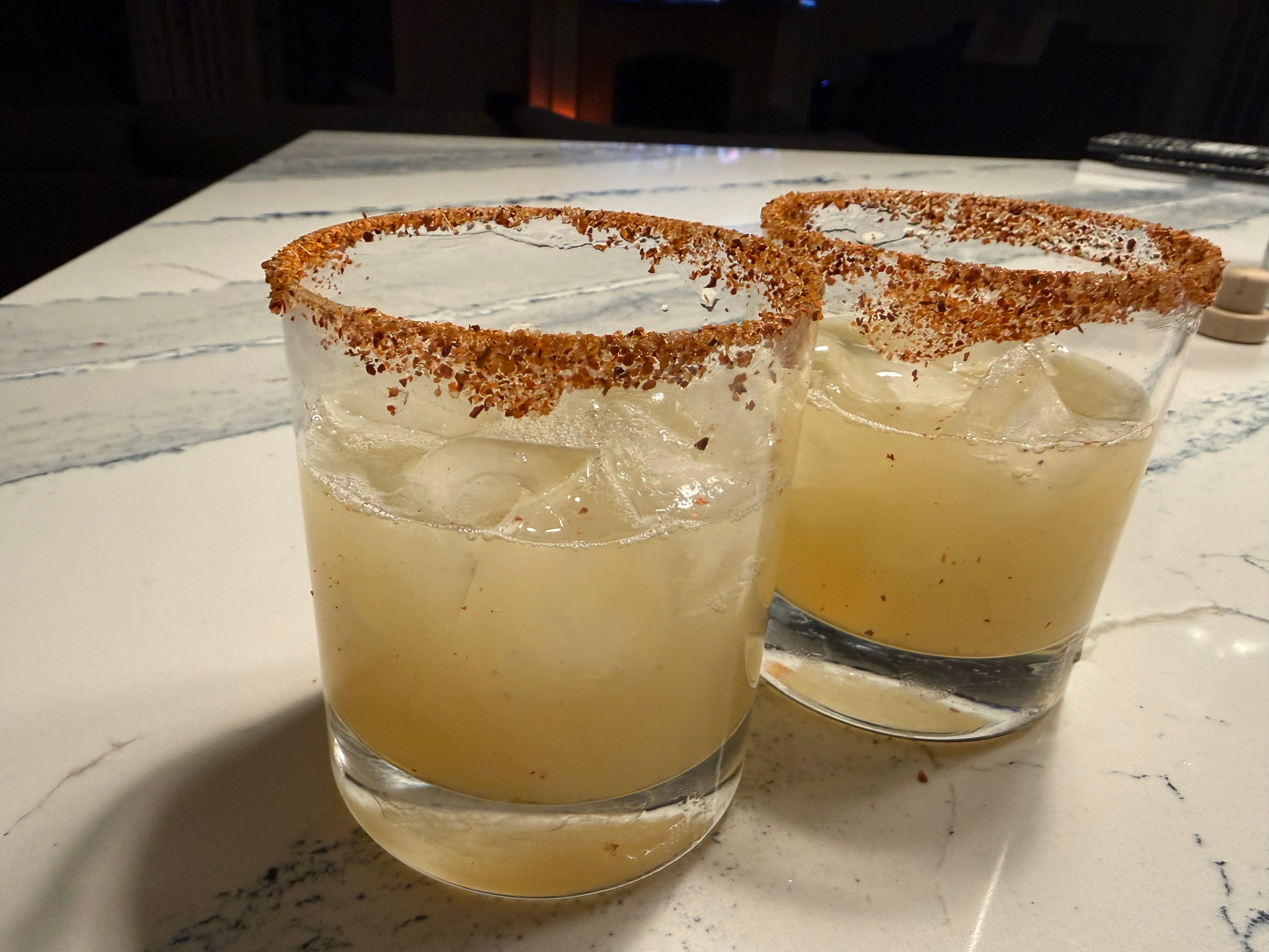 We’ve enjoyed this several evenings since picking up the Ritual Agave Spirit Alternative, and it’s quite nice. We used a mixture of Clasico Tajin Seasoning and “Master of Mixes” margarita salt (both from Wegmans) to give it a little more pizzazz.