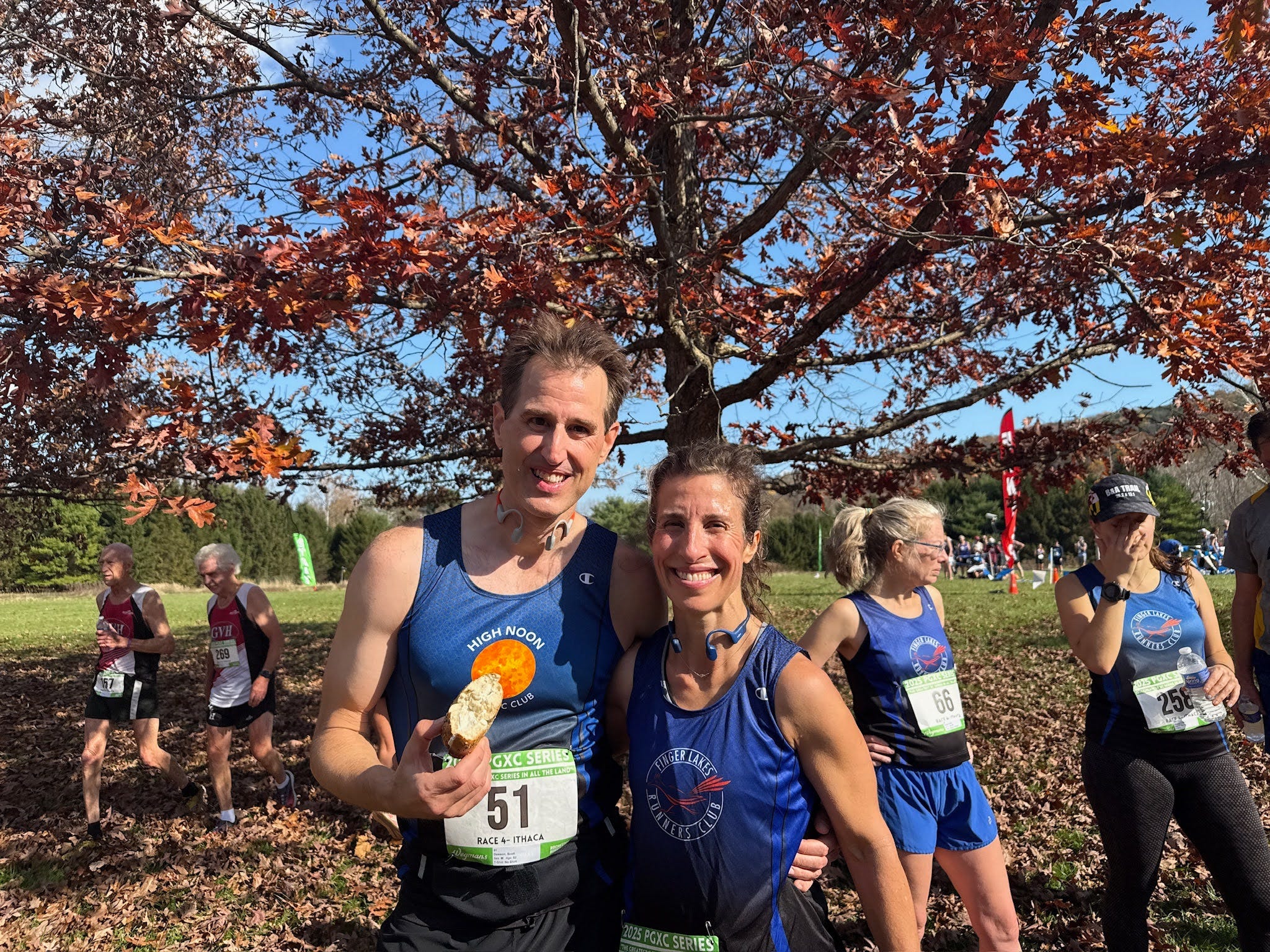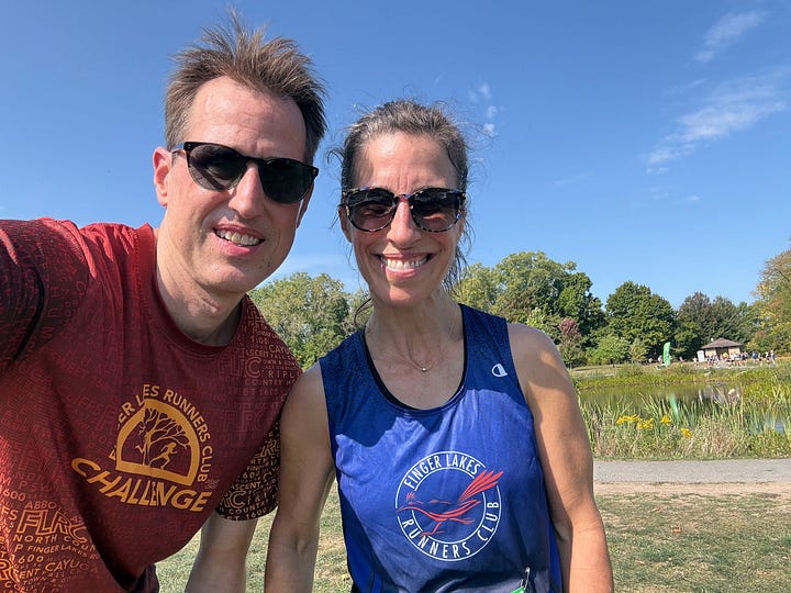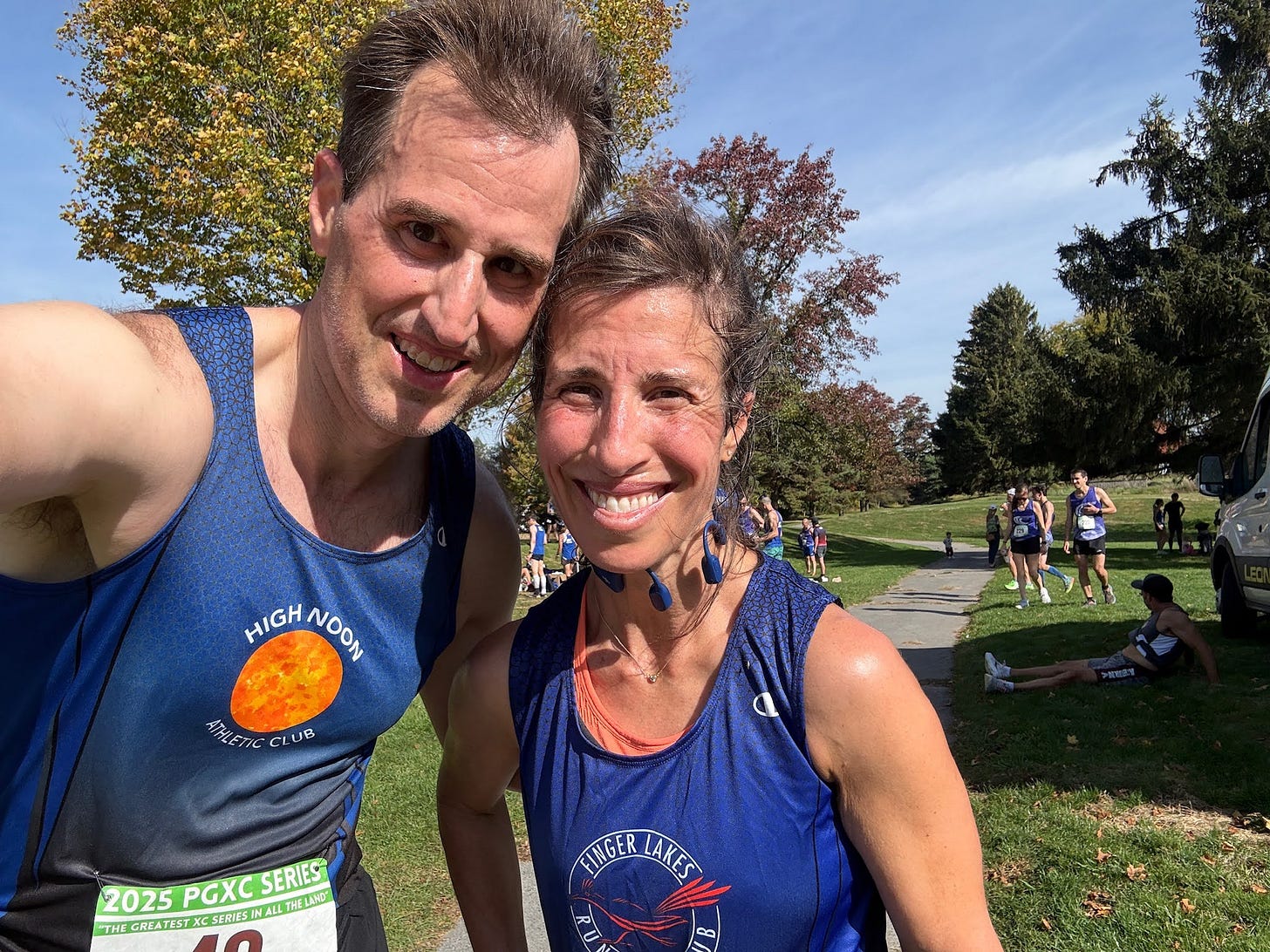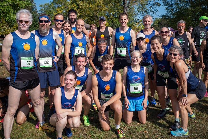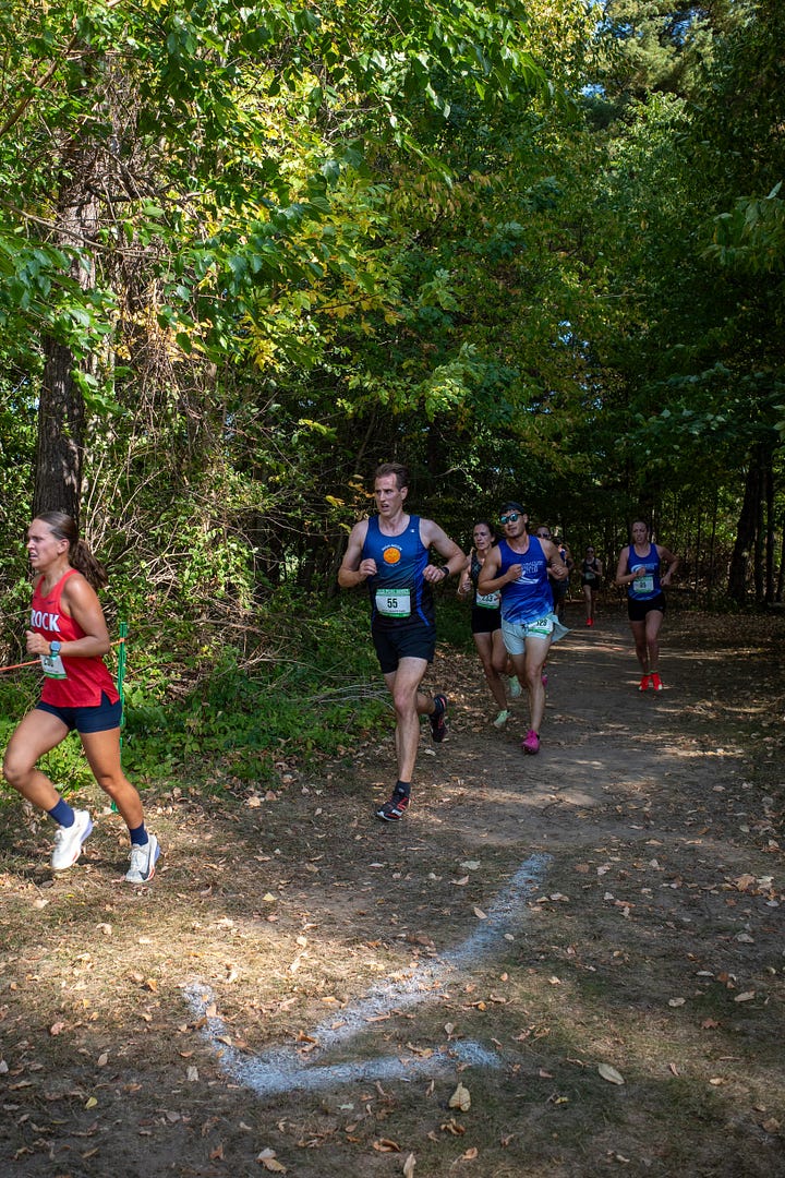 November 2: Another stellar day, and a strong turnout from Ithaca for this home race at Treman State Park. The course had, in the words of Dave Kania, “something for everyone to hate.” Open fields, obstacles in the form of grills and manhole covers, packed cinder, blacktop, dirt singletrack, rutted leaf-strewn Jeep roads, and rocky paths. In other words, it was perfect! The singletrack portion was my personal favorite, but the longer distance really gassed me. A hard-fought effort for sure.