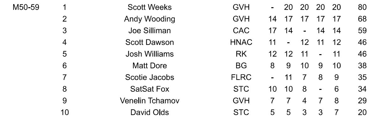 You know what they say about cross country? Every place counts. And in the end, there are awards for team and individual performances. Amy and I both scored bottles of wine for our individual top 10 age group performances, and pint glasses for our team performances (top 3 within each age group). High Noon Men’s Vets took 3rd overall, and Women’s Vets won 1st Overall. Here’s how the top 10 individual vets shook out.