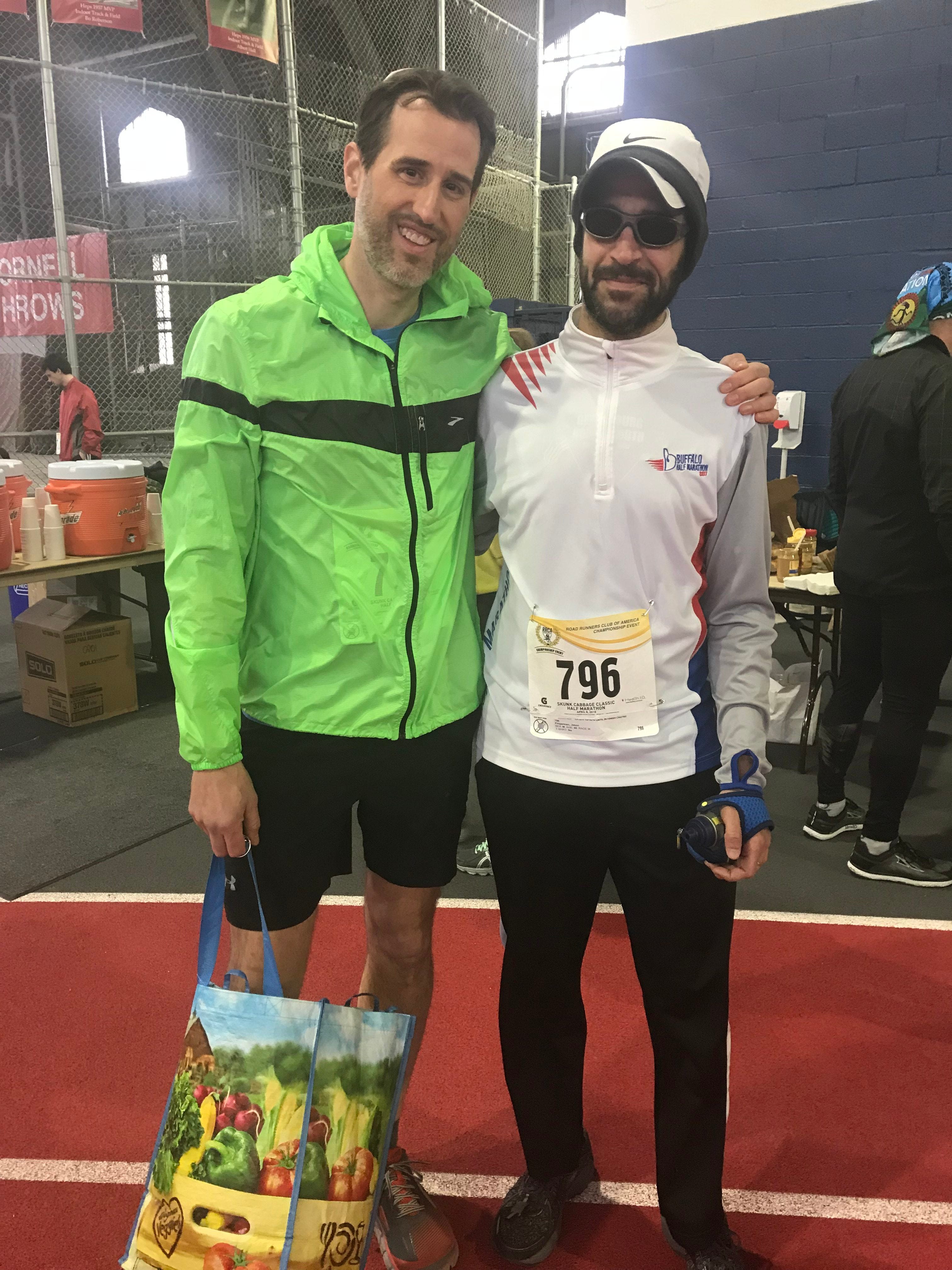 I then ran into Jason Fingerman, who was treating today as a final volume day leading up to the Big Sur Marathon. We had been chatting on Strava about the race, and wanted to get together for a picture beforehand. He routed his first 8 miles downtown from Cornell and then back up Buffalo Street. He had my instant respect based on this route. He’d finish off his long run on the race course. In 1993, you could have found Jason and I in adjacent dorm rooms on Onondaga 4N at SUNY Geneseo. Neither of us were runners then, but we sure are now!