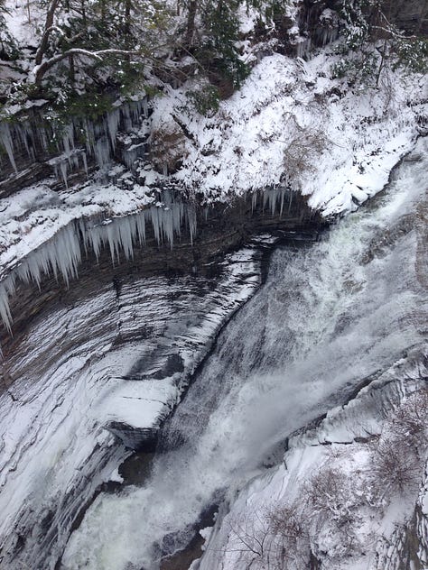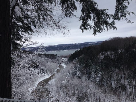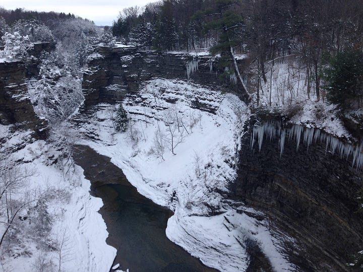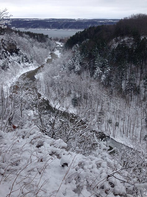 There’s something magical about the snow for me, and this was my first time doing a longer run in the deep, white stuff. The trails at Taughannock Falls State Park were virtually empty, with just a few tracks made by hikers before me. I ran the base to a beautiful winter cathedral, up the camp road and the North Rim, partway down the South Rim and then reversed it for a total of 8 miles.