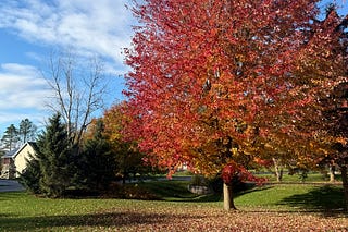 A bright red maple, a new word game, and thoughts on solo dining and connection.